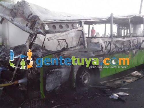 Según las informaciones recolectada por nuestro reportero Roberto Reyes, los pasajeros se percataban que la guagua iba “botando humo”, y le avisaron al chofer pero este no le prestó atención. El fuego comenzó en el área del motor, según los pasajeros.